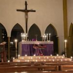 Les vendredis 5, 12 et 19 dĂ©cembre, notre paroisse a cĂ©lĂ©brĂ© trois messes Rorate, Ă lâaube, Ă la seule lumiĂšre des bougies.